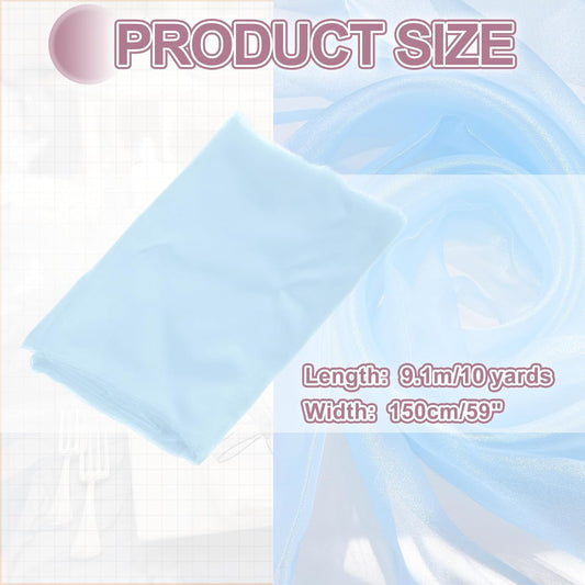 MECCANIXITY Iridescent Sheer Organza Fabric, 10 Yards x 59 Inches Solid Holographic Shiny Fabric Organza Cloth for Wedding, Curtains, Costume, Photo Background, Light Blue