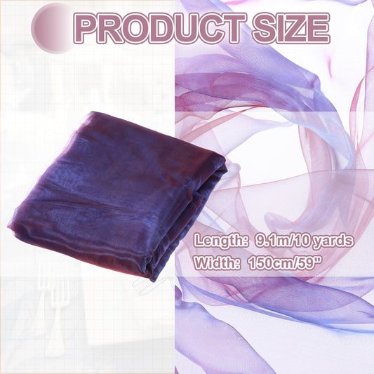 MECCANIXITY Iridescent Sheer Organza Fabric, 10 Yards x 59 Inches Solid Holographic Shiny Fabric Organza Cloth for Wedding, Curtains, Costume, Photo Background, Dark Purple