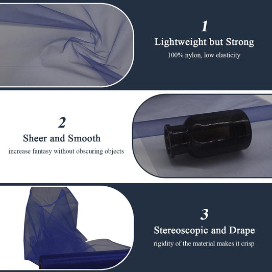 Organza Tulle Fabric Rolls, Crystal Organza 12" by 50 Yards (150 ft) Sheer Nylon Silky Shiny Netting Spool Bolt for DIY Craft Table Runner Wedding Baby Shower Party Decor (Navy Blue)