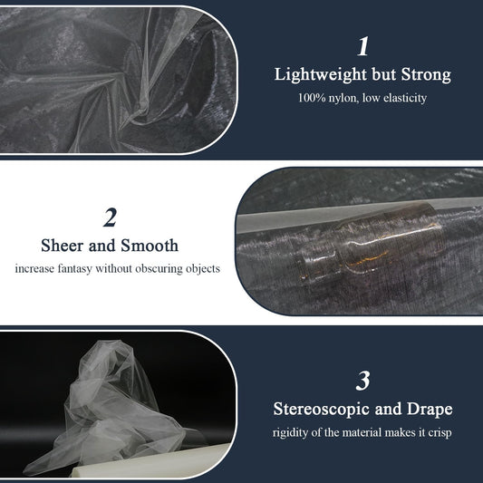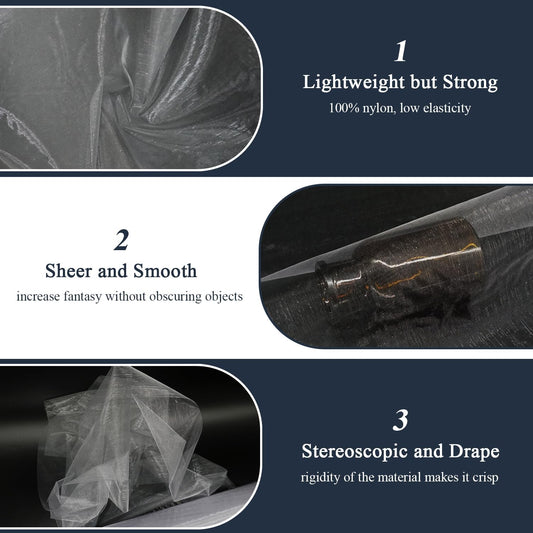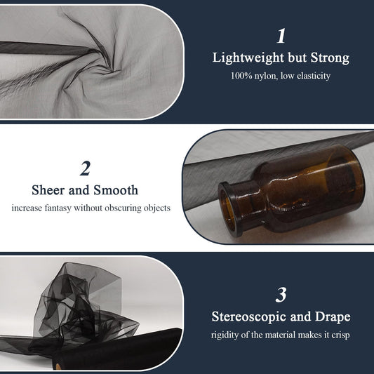 Black Organza Tulle Fabric Rolls, Crystal Organza 12" by 50 Yards (150 ft) Sheer Nylon Silky Shiny Netting Spool Bolt for DIY Craft Table Runner Wedding Baby Shower Party Decor (Black)