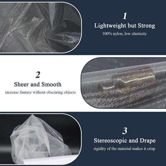 White Tulle Organza Fabric Rolls, Crystal Organza 12" by 50 Yards (150 ft) Sheer Nylon Silky Shiny Netting Spool Bolt for DIY Craft Table Runner Wedding Baby Shower Party Decor (White)