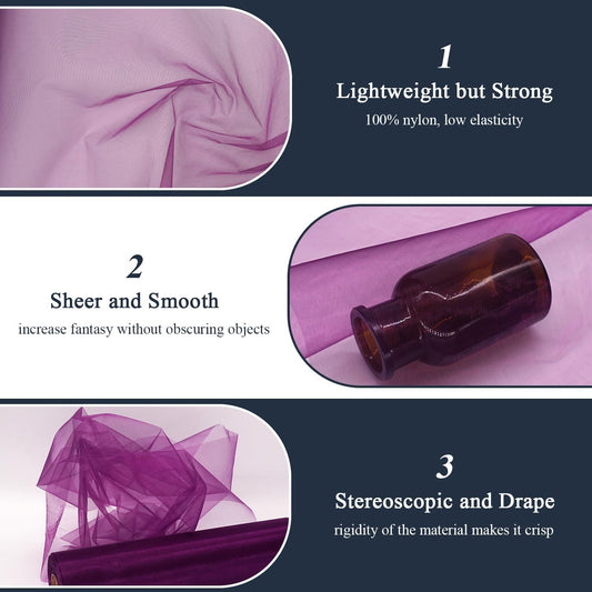 Purple Organza Tulle Fabric Rolls, Crystal Organza 12" by 50 Yards (150 ft) Sheer Nylon Silky Shiny Netting Spool Bolt for DIY Craft Table Runner Wedding Baby Shower Party Decor (Purple)