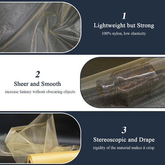 Gold Organza Tulle Fabric Rolls, Crystal Organza 12" by 50 Yards (150 ft) Sheer Nylon Silky Shiny Netting Spool Bolt for DIY Craft Table Runner Wedding Baby Shower Party Decor (Gold)