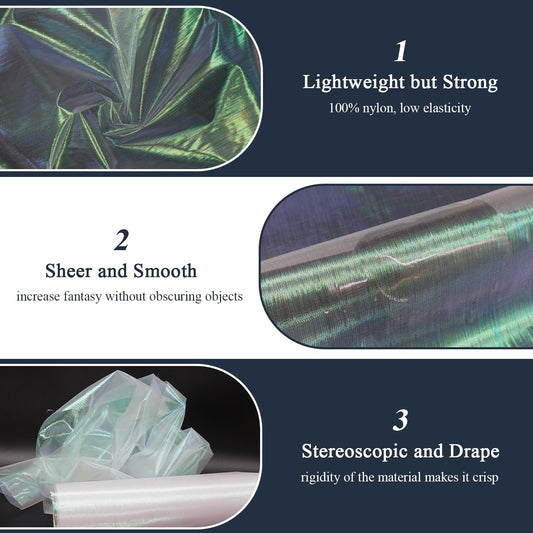 Organza Fabric Tulle Rolls 12 Inch 50 Yards (150 feet) Crystal Sheer Silky Shiny Netting Spool Bolt for DIY Craft Table Runner Wedding Baby Shower Decor Gift Wrapping Party Supplies (Iridescent White)