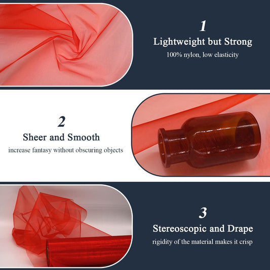 Red Organza Tulle Fabric Rolls, Crystal Organza 12" by 50 Yards (150 ft) Sheer Nylon Silky Shiny Netting Spool Bolt for DIY Craft Table Runner Wedding Baby Shower Party Decor (Red)
