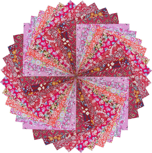 HANPATQUI 50PCS 5 x 5 inch Pink Printed 100% Cotton Fat Quarters Fabric for Sewing and Quilting Bundles Precut Fabric Square for DIY Craft Patchwork