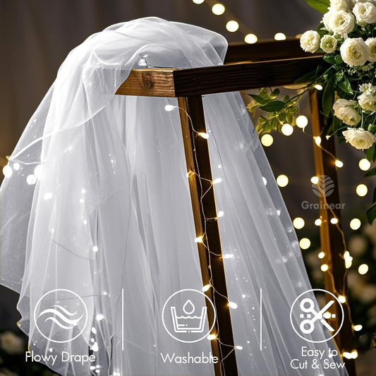 White Organza Fabric – 44" x 5 Yards Wide Sheer Tulle for Wedding Arch Draping, Gowns, Table Runners, Party Decor, Curtains & DIY Crafts – Translucent Fabric for Elegant Projects