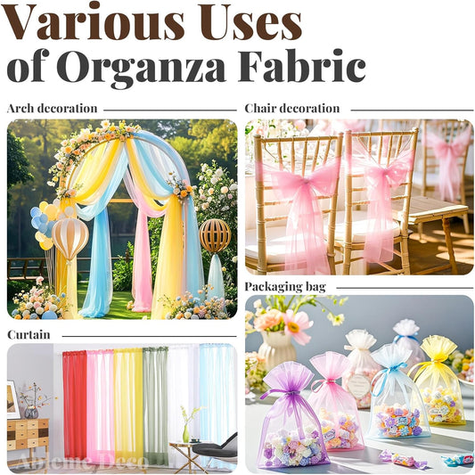 White Organza Fabric – 44" x 10 Yards Wide Crystal Sheer Tulle for Wedding Decorations, DIY Sewing, Drapes, Party Backdrops, Chair Sashes & Gown Overlays – Lightweight & Elegant