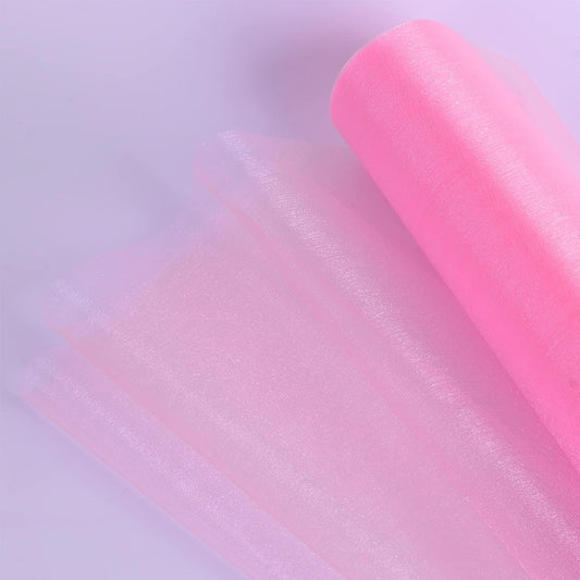 Crystal Organza Fabric Tulle - 16" by 50 Yards Sheer Fabric for Wedding Party Decoration Bridal Shower Tutu Roll Netting Spool Ribbon Wrapping (Pink)