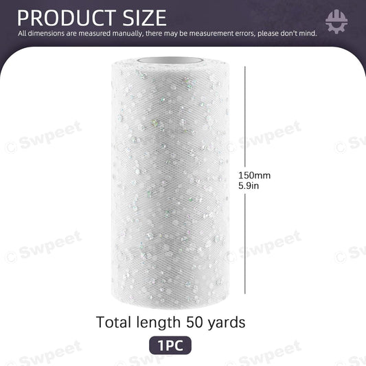 Swpeet 6 Inch by 50 Yards White Glitter Tulle Fabric Roll, Fabric Spool Sparkling Tulle Ribbon, Netting Polyester Spool for DIY Birthday Party Wedding Decorations Christmas Craft Supplies