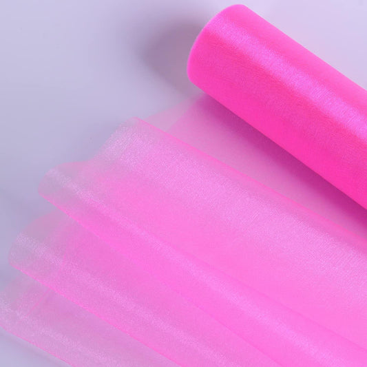 Crystal Organza Fabric Tulle - 16" by 50 Yards Sheer Fabric for Wedding Party Decoration Bridal Shower Tutu Roll Netting Spool Ribbon Wrapping (Dark Pink)