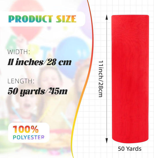 Crystal Organza Fabric Tulle 11 Inch by 50 Yards Sheer Tulle Rolls for DIY Craft Wedding Party Baby Shower Decor Gift Wrapping Party Supplies (Red)