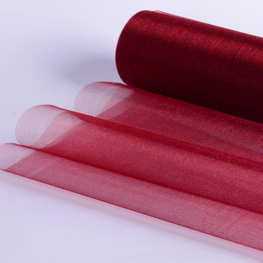 Crystal Organza Fabric Tulle - 16" by 50 Yards Sheer Fabric for Wedding Party Decoration Bridal Shower Tutu Roll Netting Spool Ribbon Wrapping (Burgundy)