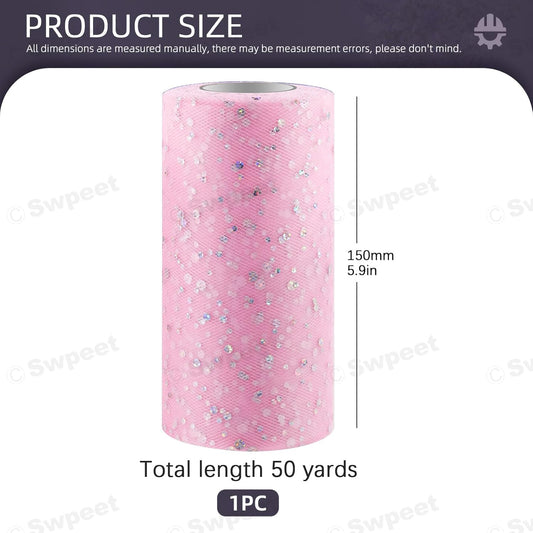 Swpeet 6 Inch by 50 Yards Pink Glitter Tulle Fabric Roll, Fabric Spool Sparkling Tulle Ribbon, Netting Polyester Spool for DIY Birthday Party Wedding Decorations Christmas Craft Supplies