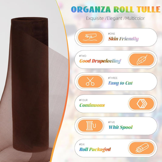 Crystal Organza Fabric Tulle 11 Inch by 50 Yards Sheer Tulle Rolls for DIY Craft Wedding Party Baby Shower Decor Gift Wrapping Party Supplies (Brown)