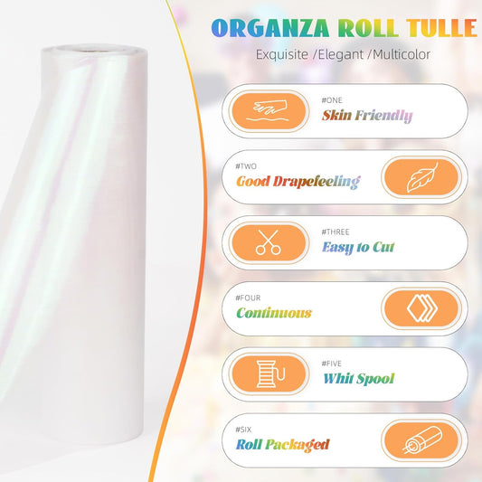 Crystal Organza Fabric Tulle 11 Inch by 50 Yards Sheer Tulle Rolls for DIY Craft Wedding Party Baby Shower Decor Gift Wrapping Party Supplies (Fantasy White)