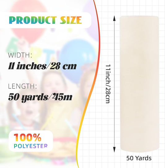 Crystal Organza Fabric Tulle 11 Inch by 50 Yards Sheer Tulle Rolls for DIY Craft Wedding Party Baby Shower Decor Gift Wrapping Party Supplies (Ivory)