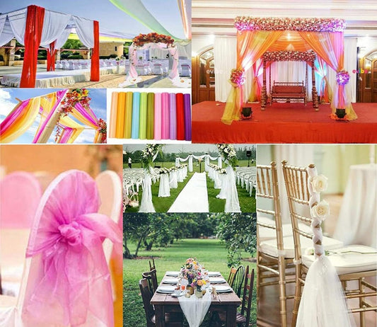 Crystal Organza Fabric Tulle 11 Inch by 50 Yards Sheer Tulle Rolls for DIY Craft Wedding Party Baby Shower Decor Gift Wrapping Party Supplies (Fantasy Pink)