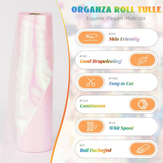 Crystal Organza Fabric Tulle 11 Inch by 50 Yards Sheer Tulle Rolls for DIY Craft Wedding Party Baby Shower Decor Gift Wrapping Party Supplies (Light Pink)
