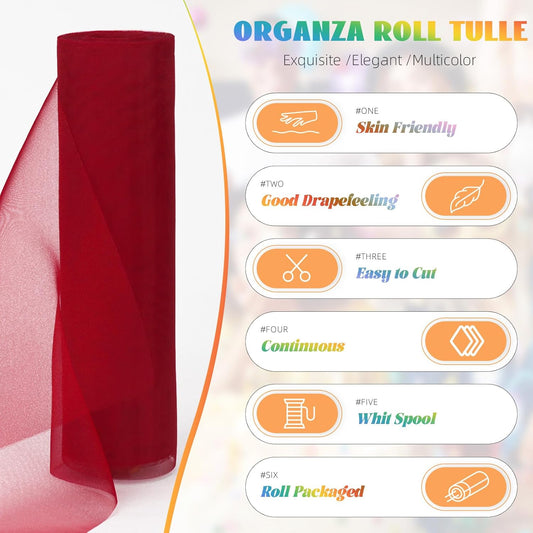 Crystal Organza Fabric Tulle 11 Inch by 50 Yards Sheer Tulle Rolls for DIY Craft Wedding Party Baby Shower Decor Gift Wrapping Party Supplies (Wine)