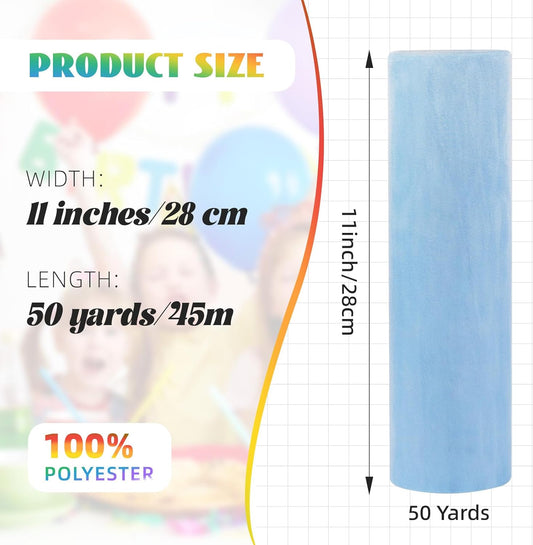 Crystal Organza Fabric Tulle 11 Inch by 50 Yards Sheer Tulle Rolls for DIY Craft Wedding Party Baby Shower Decor Gift Wrapping Party Supplies (Light Blue)