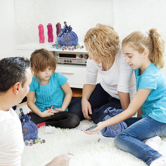 DND Dice Bags Large with Pockets Blue Storage Bag Star Pattern for D&D RPG Game Dices - Capacity 200+ Dice
