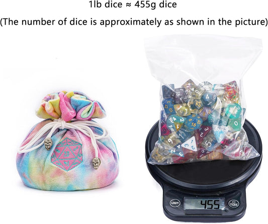 Large Dice Bags with Pockets Rainbow Storage Bag D20 Logo for DND RPG Game Dices (with 1lb Random DND Dice)