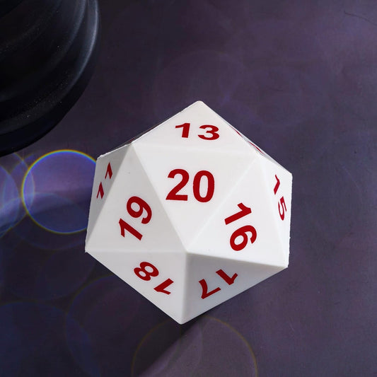 Large D20 Foam DND Dice, 80mm Spindown D&D RPG 20 Sided Dice with Drawstring Bag for Role Playing Games (White )