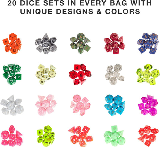 Wiz Dice Mini DND Dice Set - 140 Pieces Total (20 Sets of 7 Dice in Unique Colors) & Storage D&D Bag-Polyhedral Role Playing Dice - Perfect DND Accessories for TTRPG Dice - Hafling's Haversack