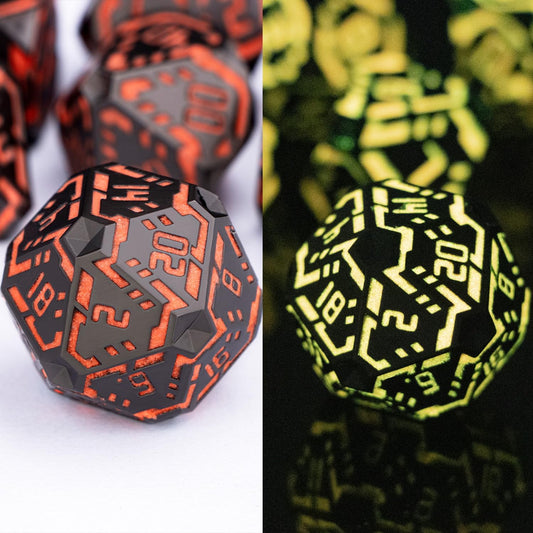 Metal DND Sci-fi Dice Set 7PCS Luminous Orange Stripe Polyhedral Dice for Dungeons Dragons RPG Role Playing Game, Glitter D and D Dice with Gift Box D6 D8 D10 D12 D20