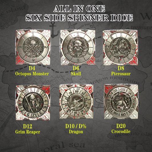 DND Dice Set Roulette: Fidget D4 D6 D8 D10 D10% D12 D20 All in One Metal D&D Spinner Dice - Cool Role Playing Dice Gifts for Dungeons and Dragons TRPG MTG Games Lover Players (Bloodstained)