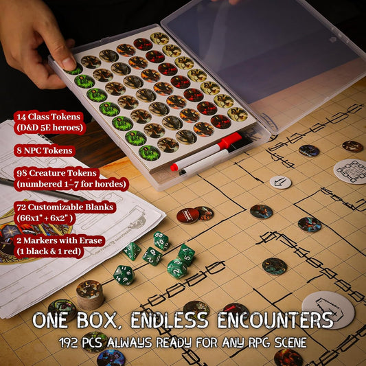 CZYY RPG Dry Erase Token Set - 192 PCS | Reusable Blank Tokens, Creature Tokens, 5E Class Characters with Maker Pens | Ideal for DND, Pathfinder, TTRPGs, MTG & Board Game