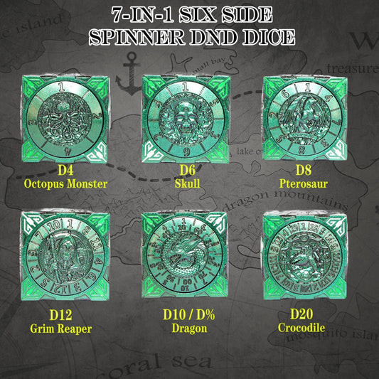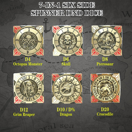 6 Sided Spinner DND Dice - Metal D4 D6 D8 D10 D10% D12 D20 All in One D&D Set - Cool Role Playing Gifts for Dungeons and Dragons TRPG MTG Games Lover Players Upgrade Ancient Bronze