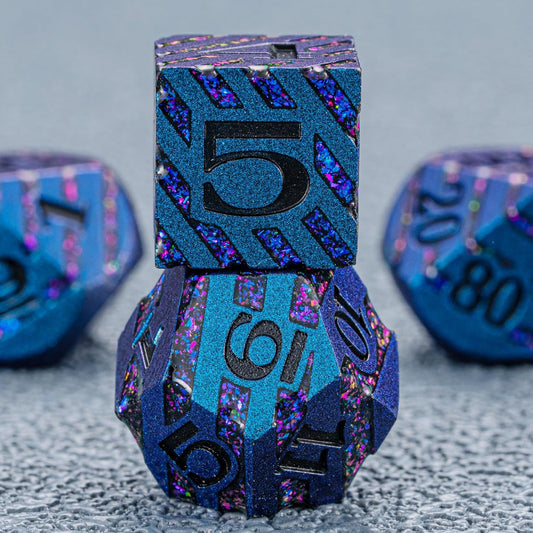Metallic Glitter Stripes D&D Dice Set,7 PCS Polyhedral Dice Set with Gift,RPG Metal Dice Set Dungeons and Dragons Tabletop Game (Blue+Light Purple)