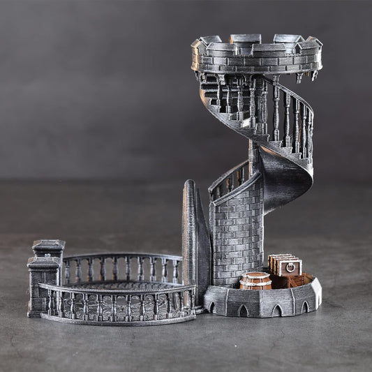 AUSPDICE Dice Rolling Tower and Tray with Spiral Stairs Perfect for Board Game, D&D Dungeons and Dragons, RPG and Pathfinder Role Playing Games (Antique Blue Color)