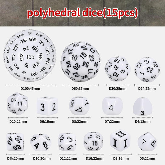 CiaraQ DND Polyhedral Dice Set (15pcs) D4-D100 Game Dice with Dice Bag for Dungeons and Dragons Role Playing Table Games (White & Black)