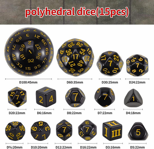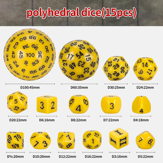 CiaraQ DND Polyhedral Dice Set (15pcs) D4-D100 Game Dice with Dice Bag for Dungeons and Dragons Role Playing Table Games (Yellow & Black)