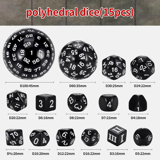 CiaraQ DND Polyhedral Dice Set (15pcs) D4-D100 Game Dice with Dice Bag for Dungeons and Dragons Role Playing Table Games (Black & White)