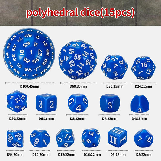 CiaraQ DND Polyhedral Dice Set (15pcs) D4-D100 Game Dice with Dice Bag for Dungeons and Dragons Role Playing Table Games (Blue & White)