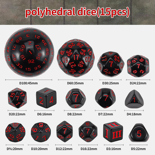 CiaraQ DND Polyhedral Dice Set (15pcs) D4-D100 Game Dice with Dice Bag for Dungeons and Dragons Role Playing Table Games (Black & Red)