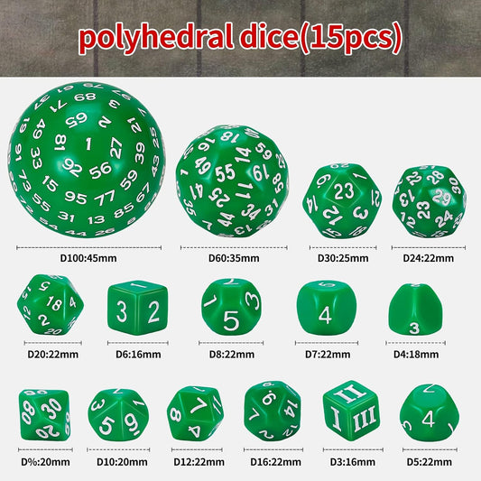 CiaraQ DND Polyhedral Dice Set (15pcs) D4-D100 Game Dice with Dice Bag for Dungeons and Dragons Role Playing Table Games (Green & White)