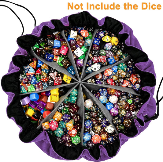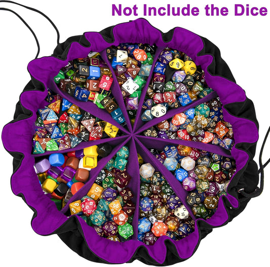 SIQUK Large Dice Bag with Pockets Big Capacity Dice Bag Drawstring Dice Pouch DND Dice Storage Bag for RPG MTG Table Games, Hold Over 300 Dice, Dark Violet