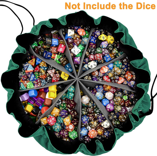 SIQUK Large Dice Bag with Pockets Big Capacity Dice Bag Drawstring Dice Pouch DND Dice Storage Bag for RPG MTG Table Games, Hold over 300 Dice, Dark Green