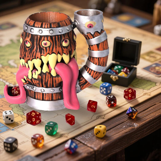 Mug Dice Tower - Dice Rolling Tower,(7PCS D20 Dice Set Included) for DND Gift and Dungeons and Dragon, Tabletop Games, Drink Holder, Tavern Style Board Game Roller (Gold)