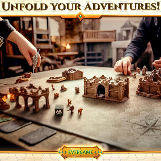 10 DND Game Mats and a lot More - Includes 6 Dungeons & Dragons Board Game Battle Maps (1" Hex Grid), Huge Size 22x26-4 3D Battle Arenas, 140+ Reusable Stickers, 4 Markers & Eraser, by EverGame