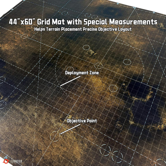 44'' x 60'' Battle Mat Gridded War-Gaming Mat for WH40K - Made of Synthetic Leather, 1.1mm Thickness (Doomsday Barrens)