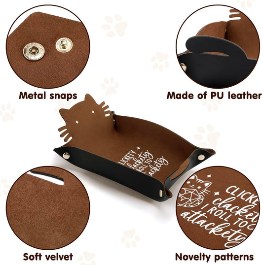 Cat Dice Rolling Tray Novelty Folding Leather Dice Holder Portable Dice Storage Accessories Decorative Desk Organizer Funny Gift for DND RPG Game Players
