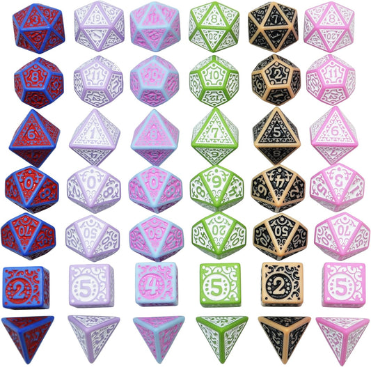 SmartDealsPro Double-Colors Polyhedral Dice Sets with Pouches for D&D DND RPG MTG Dungeon and Dragons Table Board Roll Playing Games D4 D6 D8 D10 D% D12 D20 (6-Color Sets)