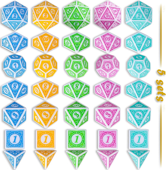 CiaraQ Polyhedral Dice Set, 5 Colors with 5 Decorative Pouches, 7 Pieces per Set, Fantasy RPG Gaming Dice/DND Dice/Role Playing Dice, Easter Themed