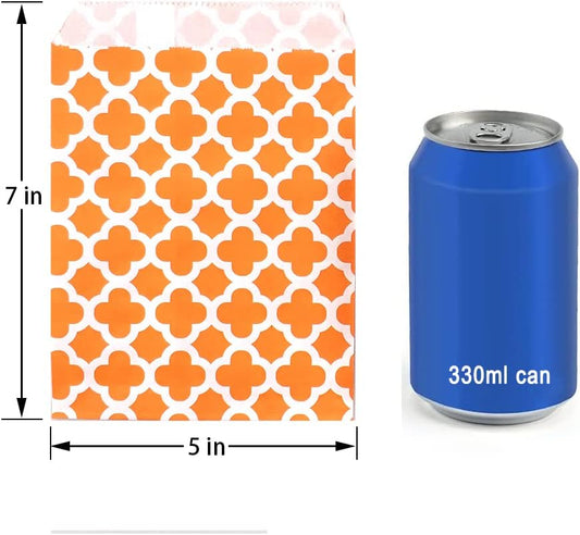 KEYYOOMY 100 Pcs Orange Candy Buffet Bags Small Cookie Bags Polka Dot Paper Treat Bag for Wedding Birthday Party (5 inch x 7 inch)